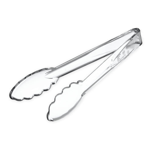 Carly® Utility Tongs, 9"L, one-piece, temperature range up to 212° F & dry heat up to 270° F, break resistant, dishwasher safe, polycarbonate, clear, NSF
