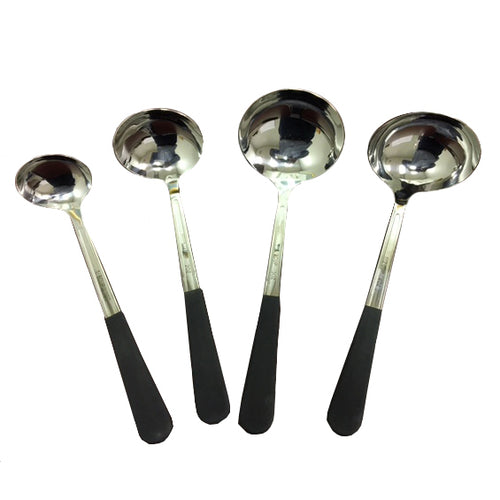 Serving Ladle, 2 oz., 12-1/2" overall length, dishwasher safe, black high temp PVC cool-grip handle, stainless steel, mirror finish