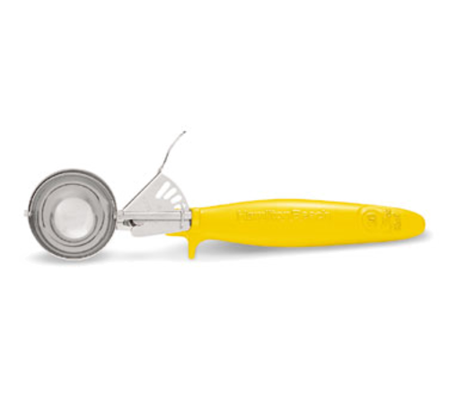 Disher, size 20, Microban®-antimicrobial color-coded Ergo handle with pan rest, stainless steel bowl, 2 year warranty, yellow (must purchase in multiples of 12)