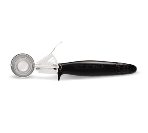 Disher, size 30, Microban®-antimicrobial color-coded Ergo handle with pan rest, stainless steel bowl, 2 year warranty, black (must purchase in multiples of 12)