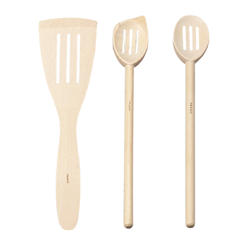 HIC Spoon, 11-1/2", slotted, round, beechwood, Made in France