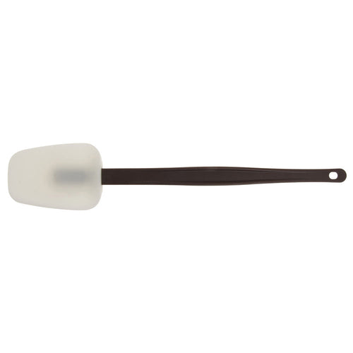 Hi-Temp Spoon/Scraper, 3" wide head, heat-resistant up to 500°F/260°C, dishwasher safe, 16-1/2" brown fiber-glass infused nylon handle with hanging hole, white silicone head