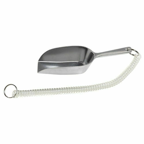 Ice Scoop, 6 oz., 8"L, flat bottom, with plastic coil tether, aluminum