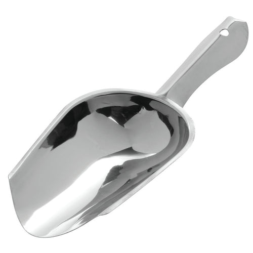 Ice Scoop, 9-1/4" x 3-1/4", with hanging hole, stainless steel, mirrored finish