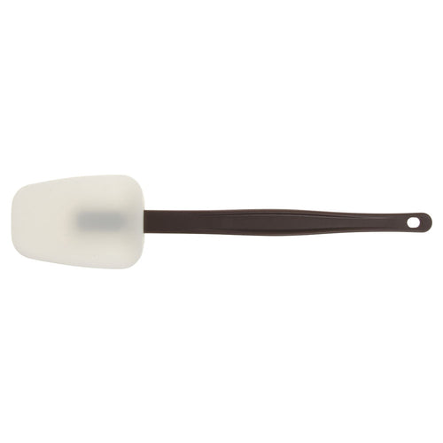 Hi-Temp Spoon/Scraper, 3" wide head, heat-resistant up to 500°F/260°C, dishwasher safe, 14-1/2" brown fiber-glass infused nylon handle with hanging hole, white silicone head