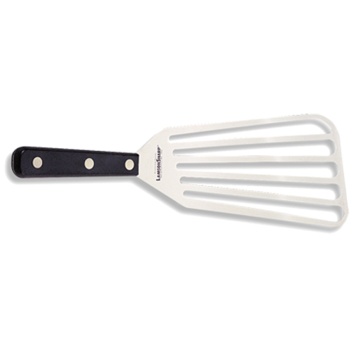 Turner, 9"L x 4"W, slotted, stainless steel blade, wood handle, black