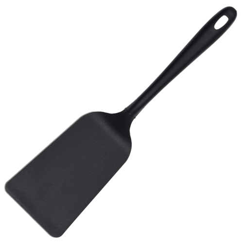 Spatula, 12-1/2" overall, 3-3/8" x 5-1/8"L blade, solid, rectangular, heat resistant up to 428°F (220 0176C), ergonomic handle, hanging hole, nylon, black