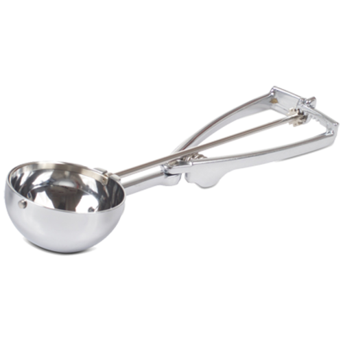 Stockel Scoop, size 16, 2.1 oz., 9-1/4"L overall, round, chrome plated brass handles, stainless steel, Made in Germany