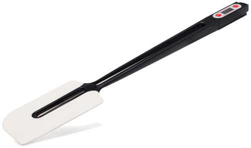 Elveo Spatula, 15"L, heat resistant up to 392°F, includes removable thermometer with a -4 to 392°F temperature range, exoglass handle, silicone blade, black and white