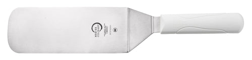 Millennia® Turner, 8"L x 3"W, 14-3/4" overall length, solid stain-resistant stainless steel blade, white molded polypropylene handle (for HACCP or dedicated use option), NSF