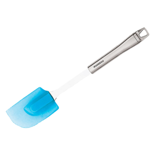 Spatula, 10-1/2"L, hanging loop, dishwasher safe, 18/10 stainless steel handle, blue silicone blade, Paderno, Series 48278