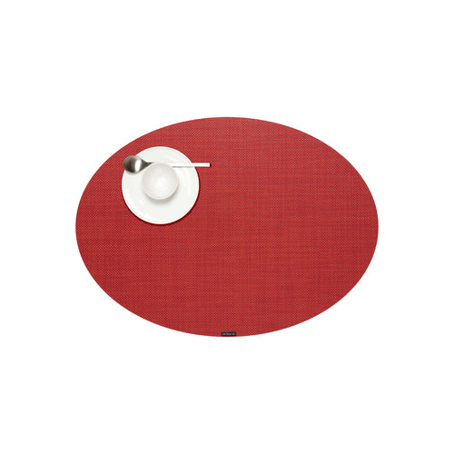 Mini Basketweave Collection Table Mat, 14" x 19-1/4", oval, Microban® antimicrobial protection, TerraStrand™ woven vinyl, pimento, Made in USA (minimum order 4 each)