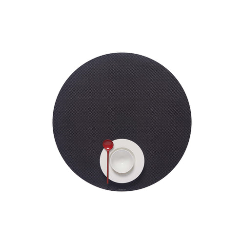 Mini Basketweave Collection Table Mat, 15" dia., round, Microban® antimicrobial protection, TerraStrand™ woven vinyl, black, Made in USA (minimum order 4 each)