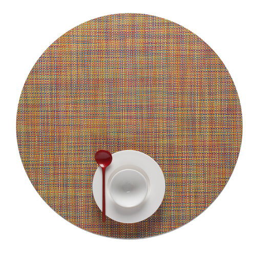 Mini Basketweave Collection Table Mat, 15" dia., round, Microban® antimicrobial protection, TerraStrand™ woven vinyl, confetti, Made in USA (minimum order 4 each)