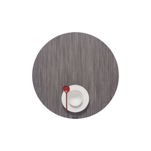 Mini Basketweave Collection Table Mat, 15" dia., round, Microban® antimicrobial protection, TerraStrand™ woven vinyl, light grey, Made in USA (minimum order 4 each)