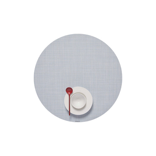Mini Basketweave Collection Table Mat, 15" dia., round, Microban® antimicrobial protection, TerraStrand™ woven vinyl, sky, Made in USA (minimum order 4 each)