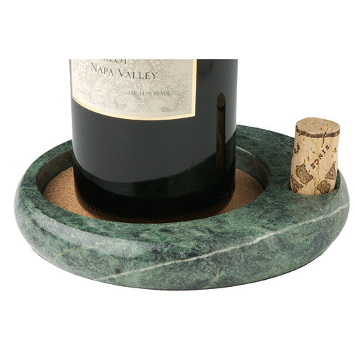 Sommelier's Wine Bottle Coaster, 6" dia. overall, 4" dia. offset well, black felt base, with natural cork mat, marble, green (factory box)