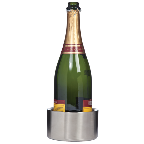 Ascot Wine Bottle Coaster, 4-5/8" dia. x 2-3/4"H, double-wall, 4" dia. interior, brushed stainless steel (factory box)