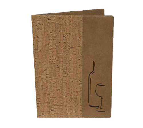 Securit® Cork Designer Wine Card, 10" x 13", brown print wine bottle & glass on front cover, (2) 2-page plastic inserts