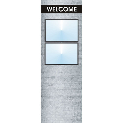 Menu Board, 2-pocket, floor stand, with "Welcome" greeting, 23" x 11" x 66"H overall, single-sided, holds (2) 17" x 11"H horizontal inserts, rectangular, convex, clear laminate covers with magnetic trim closure, powder-coated steel/Sintra® plastic, white imprinted, galvanized finish