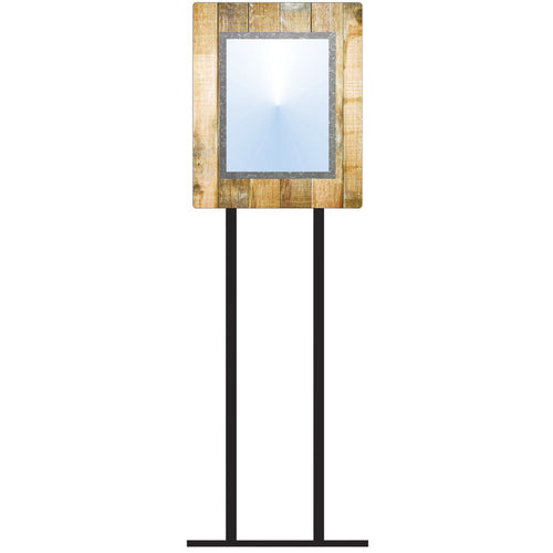 Menu Board, 1-pocket, floor stand, 11" x 1/2" x 47"H overall, single-sided, holds (1) 8-1/2" x 11"H insert, double stem, clear cover with magnetic trim closure, Sintra® material, 16-gauge metal floor stand, faux light oak finish