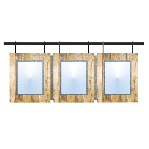 Menu Board, 3-pocket, hanging, 44" x 1/2" x 20"H overall, single-sided, holds (3) 8-1/2" x 11"H inserts, with mounting hardware: (2) 21" cables, (2) "S" hooks, (2) ceiling grid clips & 1" black powder-coated metal bar, clear covers with magnetic trim closure, metal/Sintra® material, faux light oak finish