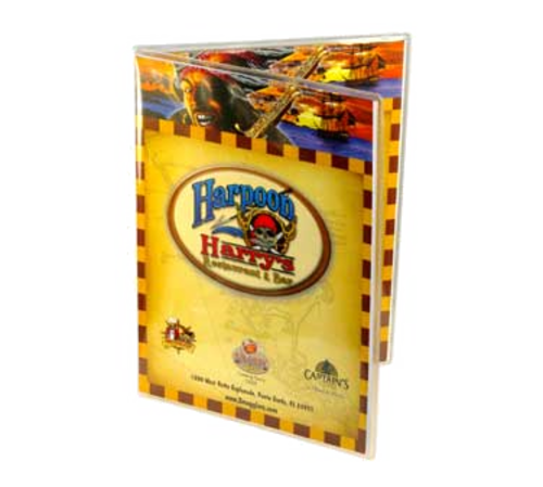 Menu Jacket, holds 10" x 13" inserts, double panel with 4 views, clear vinyl, 10/1000th's of an inch thick, electronically heat sealed, opens from center, in-stock item (normally ships 1-2 business days)