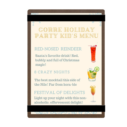 Menu Board, holds 5" x 7" insert, single panel, (2) black rubber bands, includes logo in one location, hardboard (priced per each, minimum 25 each)