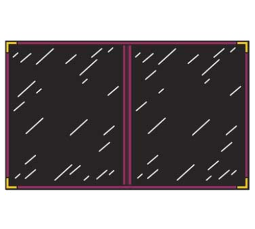 Menu Cover, holds 8-1/2" x 11" inserts, double panel, with 2 views, imitation leather over rigid board with stitched border, square metal corners, clear interior pockets, includes hot foil stamped and debossed logo on front cover (up to 45 sq. inches, includes all plate, stamp, deboss, and set-up charges), Royal Select (priced per each, minimum order 25)