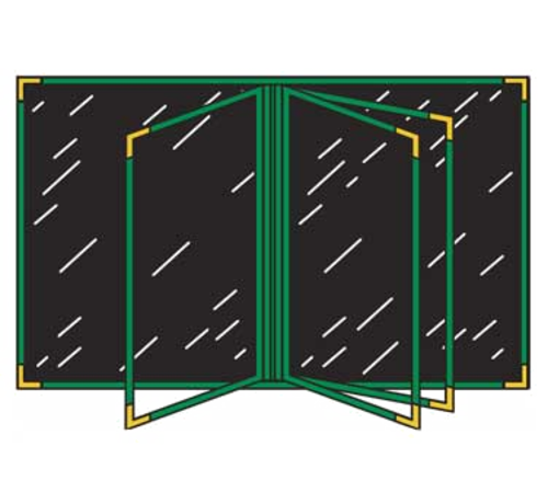 Menu Cover, holds 8-1/2" x 14" insert, five panel booklet, with 8 views, imitation leather over rigid board with stitched border, square metal corners, clear interior pockets, includes hot foil stamped and debossed logo on front cover (up to 45 sq. inches, includes all plate, stamp, deboss, and set-up charges), Royal Select (priced per each, minimum order 25)