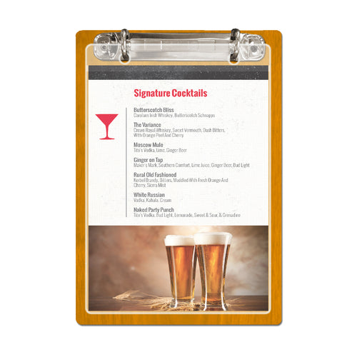 Menu Board, holds 5" x 7" inserts, single panel, nickel two ring mechanism with 1/2" capacity, wood frame (priced per each, minimum order 25)
