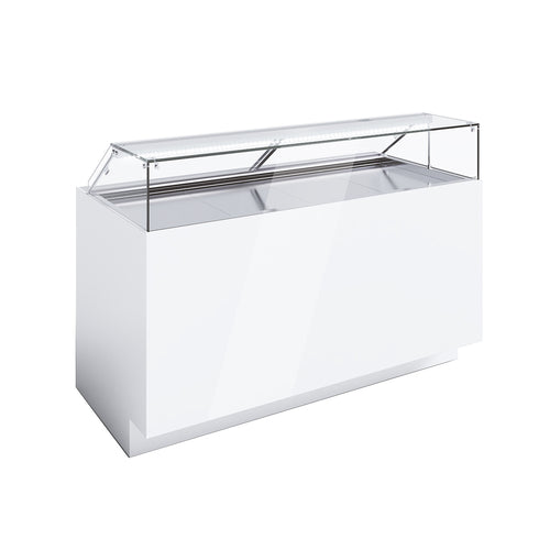 Flat - R4 - H2 Refrigerated/Pastry/Deli Display Case, 66-15/16" x 32-11/16" x 47-1/4, Glass structure with mechanical fastening, heated glass sides, bright aluminum LED light fixture, PETG easy sliding doors system, anti-fog air baffle, tank insulated with ecological polyurethane & covered with stainless steel, ventilated refrigeration with capillary system (thermostatic valve for external motor), electronic control unit & digital temperature reader flush with the surface, display trays & deck in polished steel, worktop in polished steel, supporting frame in galvanized steel with height-adjustable stainless steel feet, technical compartment & open compartmenting polished stainless steel