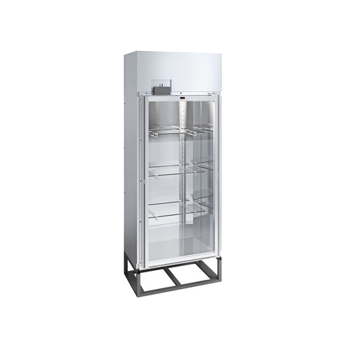 Muro Zero Frozen/Low temperature Upright Display Case, 32-11/16" x 20-5/16" x 102-3/8", Molded heat-insulated tank made of ecological polyurethane coated with AISI 304 stainless steel, ceiling ventilated refrigeration system on all display levels, automatic defrost, remote condensing unit, digital control panel integrated in the door frame, ‘zero’ flush doors with mirror screen printing, bottom trays in mirrored glass, back and internal sides in mirrored glass with magnetic hook, glass shelves adjustable on racks, indirect lighting incorporated on the door frame with no spot 3000°K strip-led, tubular steel base with height-adjustable feet