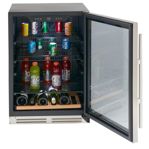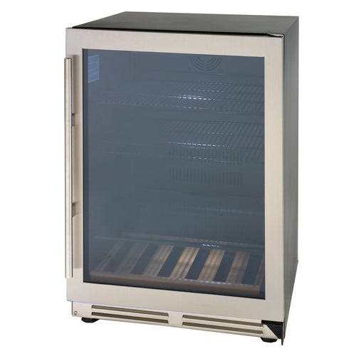Beverage Cooler, reach-in, one-section, 23-1/2"W, 5.8 cu. ft. capacity, seamless hinged glass door, (2) vinyl slide out shelves, (1) glass shelf & (1) roll out wooden tray on bottom, LED interior light, soft touch electronic display, automatic defrost, black interior & exterior, R600a refrigerant, 120v/60/1-ph, 1.1 amps, cord & plug, cETLus