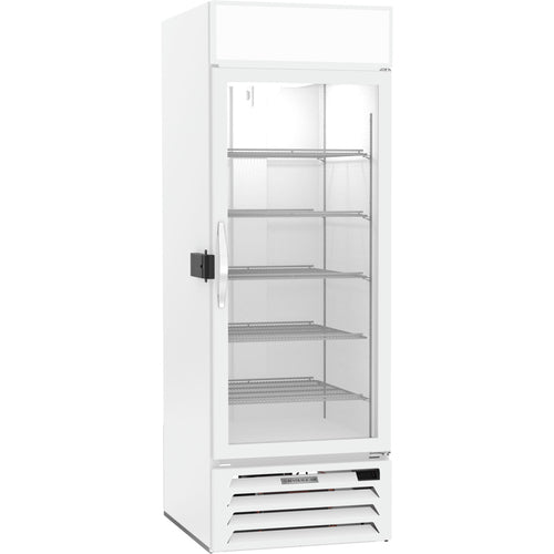 MarketMax™ Freezer Merchandiser, reach-in, one-section, (1) double pane hinged glass door with electronic lock, 22.5 cu. ft. capacity, electronic control, digital display, (5) epoxy coated wire shelves, LED interior lighting, lighted sign panel, self closing door with automatic hold-open feature, bottom-mounted refrigeration, white exterior, R290 Hydrocarbon refrigerant, 3/4 HP, cULus, UL EPH Classified, UL-Sanitation, Made in USA