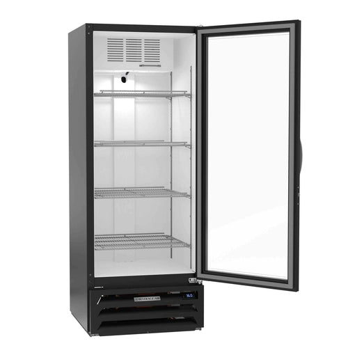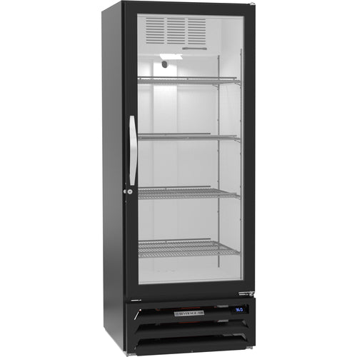 MarketMax™ Refrigerated Merchandiser, reach-in, one-section, (1) double pane hinged glass door, 12.06 cu. ft. capacity, electronic control, digital display, (4) epoxy coated steel shelves, LED interior lighting, self closing door with automatic hold-open feature, bottom-mounted refrigeration, black exterior, R290 Hydrocarbon refrigerant, 1/6 HP, cULus, UL EPH Classified, UL-Sanitation, Made in USA