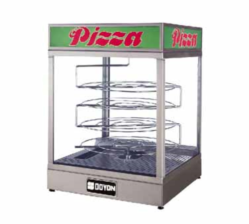 Food Warmer/Display Case, countertop, with revolving four tier interior rack, capacity (4) 19-3/4" dia. pizzas, inside water pan for humidity, adjustable heat control, tempered glass front, sides & door, stainless steel interior & exterior, 120v/60/1-ph, 11.5 amps