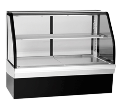 Elements Refrigerated Deli Case, 59.13"W x 35.31"D x 48”H, self contained refrigeration with condensate evaporator, adjustable temperature control, curved thermopane tilt-out front glass, 3000K LED top light & lighted shelf, adjustable stainless steel mezzanine shelf, stainless steel display deck, removable sliding rear doors, stainless steel top & sides, black base, 1/2 HP, 120v/60/1-ph electrical, cord & plug, cULus, UL EPH Classified, Made In USA, DOE 2017 Compliant