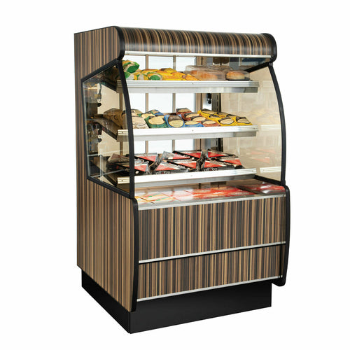 High Profile Self-Serve Heated Merchandiser, 36.1"W x 35.2"D x 60.6"H, front access, microprocessor temperature controls, 3500K LED top light, (3) adjustable independently controlled heated shelves, bottom heated deck, stainless steel interior, tempered glass ends, leg levelers, cULus, UL EPH Classified, MADE IN USA