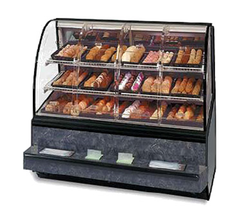 Series ’90 Non-Refrigerated Self-Serve Bakery Case, 48-1/4"W x 37-3/4"D x 48-1/2”H, (2) sets of clear lift-up self-closing front doors, top light & shelf lights, heat reducing vent system, (2) tiers of adjustable white wire shelves, white interior, removable glass sliding rear doors sloped for easy product access, clear ends, choice of laminate & trim, cULus, UL EPH Classified, Made In USA, DOE 2017 compliant