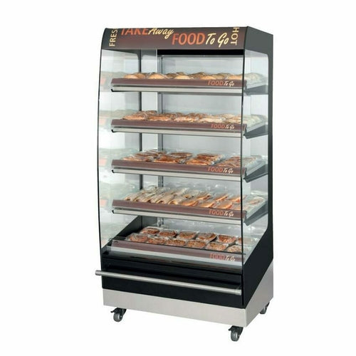 (9229375) Grab & Go Merchandiser, multi-deck, heated, self-serve, pass-thru, 39-3/8"W x 32-1/2"D x 77-5/8"H, (5) level display, upright design, replaceable signage, safety lighting, angled shelves, price strips, shatter-resistant clear side glass, front bumpers, drawer, 208v/60/3-ph 15.0 amps, 5.5kW, NEMA 15-20P, ETL-Sanitation, cETLus