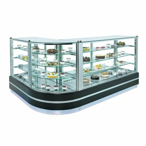 AP Series Refrigerated Bakery/ Pastry/ Dessert/ Chocolate/ Deli Display Case/Showcase, 60.63"W, (3) tiers of shelving + deck, fixed straight front glass, sliding glass rear doors, LED lighting, casters, designed for remote refrigeration, 220v/60/1-ph, 14.0 amps, CE, ETL, ETL-Sanitation