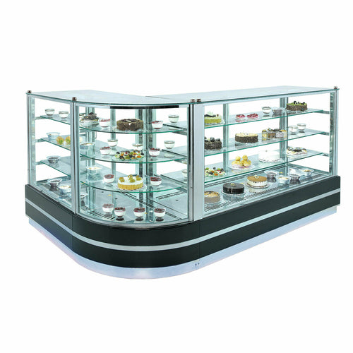 AP Series Refrigerated Bakery/ Pastry/ Dessert/ Chocolate/ Deli Display Case/Showcase, 100"W, (3) tiers of shelving + deck, fixed straight front glass, sliding glass rear doors, LED lighting, casters, self-contained refrigeration, 220v/60/1-ph, 19.0 amps, CE, ETL, ETL-Sanitation