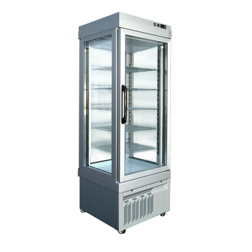 Lexus Series Classic Refrigerated Display Case/Showcase, one-section, 26.5"W, (5) adjustable shelves, (4) glass sides, +50°F/+23°F temperature range, electronic temperature controls, silver finish, bottom mount self-contained refrigeration system, 220v/60/1-ph, 5.0 amps