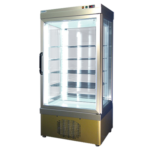 Lexus Series Classic Refrigerated Display Case/Showcase, one-section, 35.5"W, (5) adjustable shelves, (3) glass sides, +50°F/+23°F temperature range, electronic temperature controls, silver finish, bottom mount self-contained refrigeration system, 220v/60/1-ph, 5.0 amps