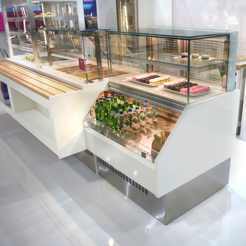 Fresco Grab n Go Combo Display, 51.6"W, double pane anti-condensation glass with vertical fixed front & side UV bonded frameless glass, rear sliding doors, stainless steel interior finish, LED lighting, (1) glass shelf, self-contained bottom mounted refrigeration, 220v/60/1-ph, CE, ETL, ETL-Sanitation