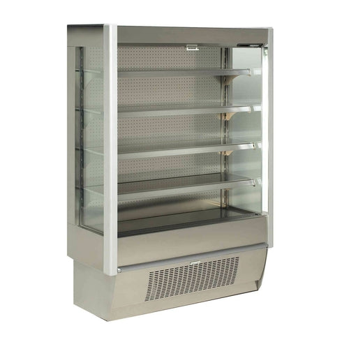 Primus Slim Refrigerated Open Multi-Deck Merchandiser, 59.1"W, (4) tiers of shelving + deck, slim depth, self-contained refrigeration system, transparent side panels, night blinds, stainless steel interior & exterior, 3" casters, 115v/60/1-ph, 25.0 amps, ETL, ETL-Sanitation, CE