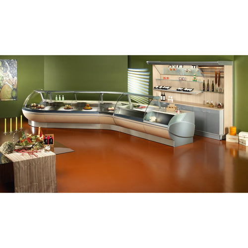 Prestige Refrigerated Deli/Cheese/Chicken/Meat/Fish Display Case/Showcase, 78"W, top opening curved front glass, sliding rear doors, fan assisted self-contained refrigeration system, 220v/60/1-ph, 8.0 amps, CE, ETL, ETL-Sanitation