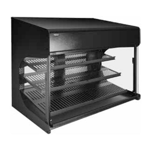 Flav-R-Savor® Air Curtain Heated Display Cabinet, self-service, counter model, (3) adjustable shelves, sliding rear doors, crumb tray, digital controls, LED interior lighting, removable glass sides, powdercoat interior/exterior finish, cULus, UL EPH Classified, Made in USA
