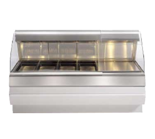HMR-106 Heated Merchandiser, 6-well self-service area (26-3/4 in. front-to-back length by 82-1/4 in. width), lockable electronic controls for radiant heat above each "well" and for lower heat, halogen lamps, removable sliding rear doors with mirrored glass, plastic cutting board, includes: sneeze guard (only with USA and Canadian units), cULus, UL EPH, CE